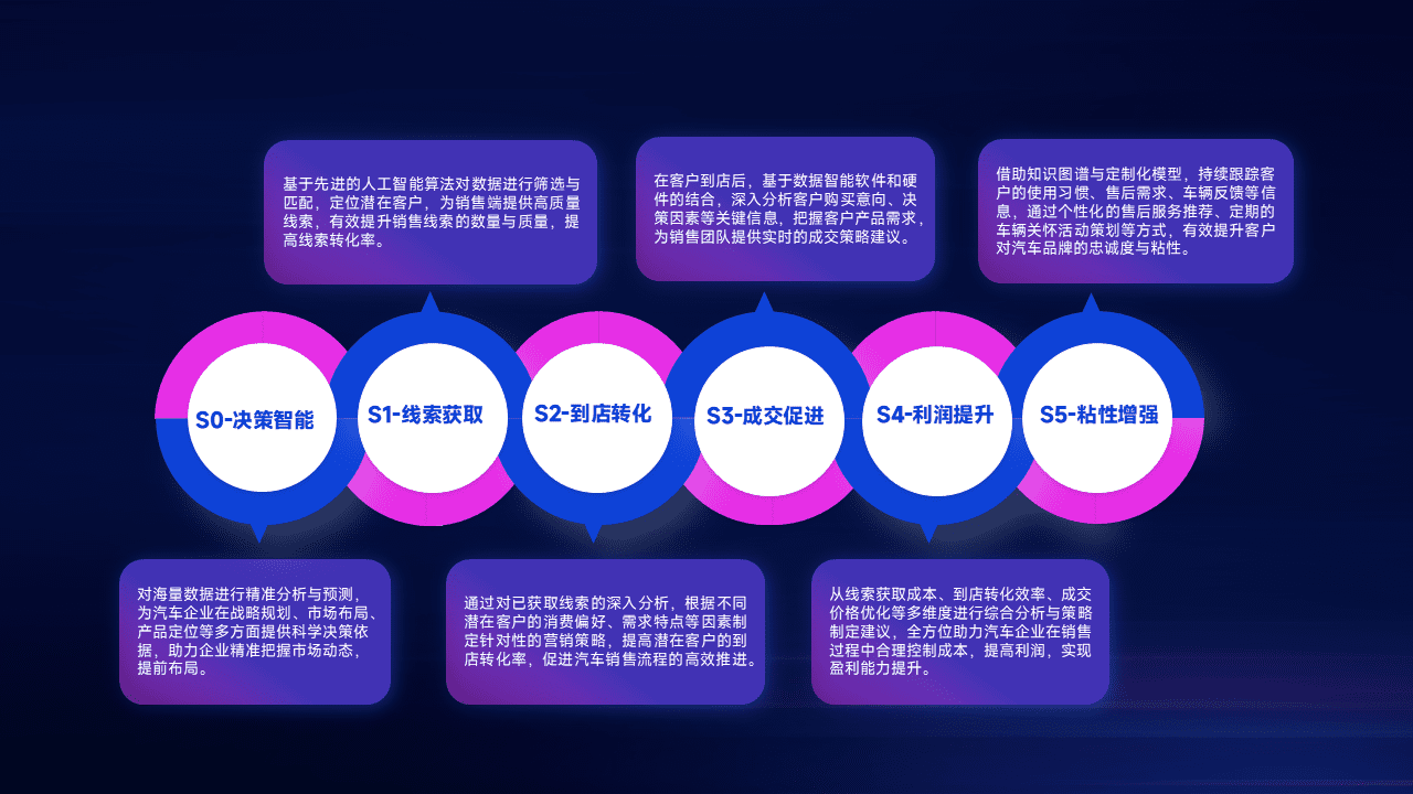 通过拓宽潜在客户来源、、优化线索分配并提高到店转化率,,,,以增强销售效率。。。。同时,,利用线索数据不断优化分析模型,,有效提升转化率,,,扩大营销影响力。。。。